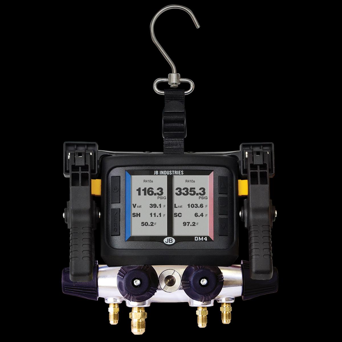 The ZEPPELIN® DM4-ZW wireless digital manifold wirelessly connects to smart devices with the DM4 App through JB GO. Simple, easy to navigate menu with transflective display for easy reading in direct sunlight.