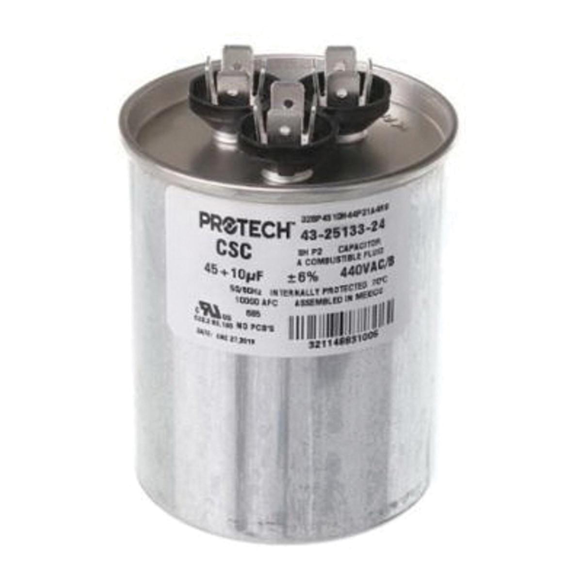 PROTECH™ Capacitor, 45+10 uF MFD Rating, 440 VAC, 50/60 Hz, Round Shape, 4.33 in Case Height, 2.62 in Diameter, 2-1/2 in Width